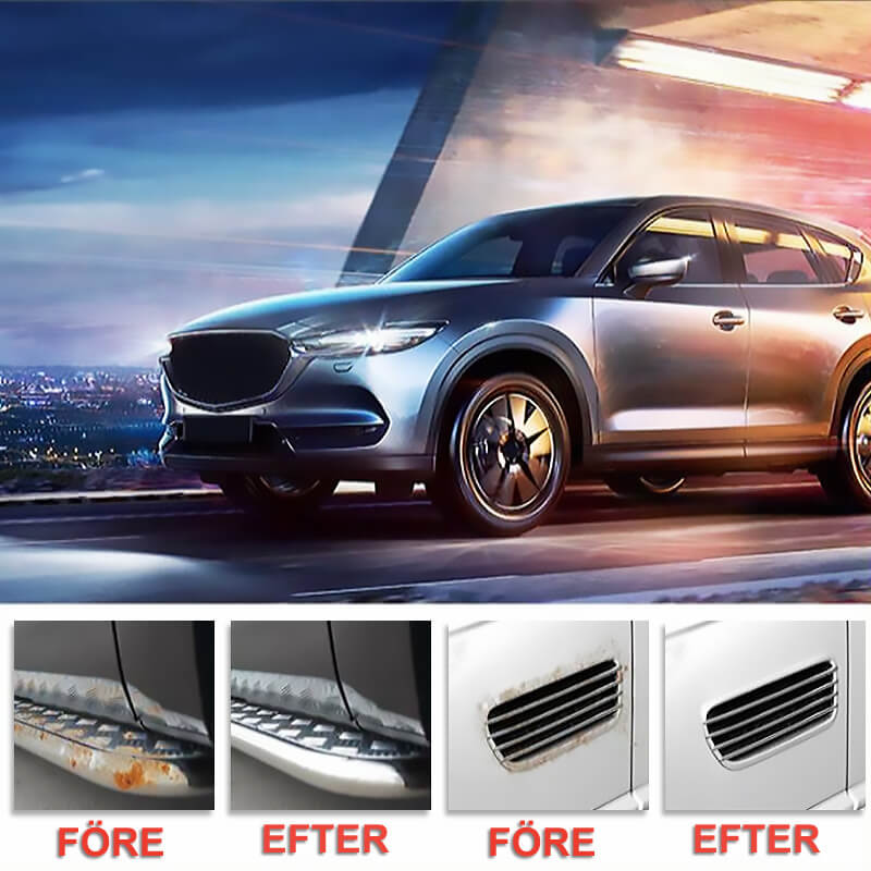 It can quickly and easily remove rust and restore the original base color of metal objects. It revives and protects iron and metal surfaces on cars, car chassis, garbage cans, equipment, railings, chains, etc.