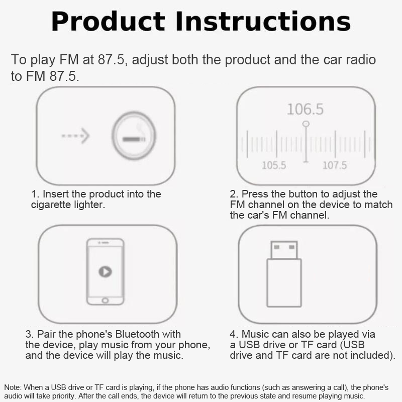 VERSATILE MUSIC PLAYBACK OPTIONS - Play your favorite tunes through multiple methods, including Bluetooth streaming, FM radio, or micro TF card (32g). The built-in FM transmitter broadcasts your music directly to your car's stereo system.