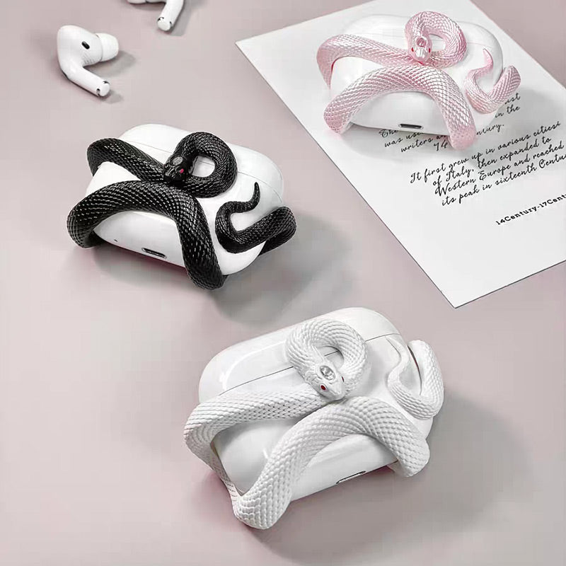 3D SNAKE DESIGN: The case features an intricate 3D snake design, with the snake winding around the case in a realistic and stylish manner. This eye-catching detail makes your earphones stand out and adds a cool, edgy touch.