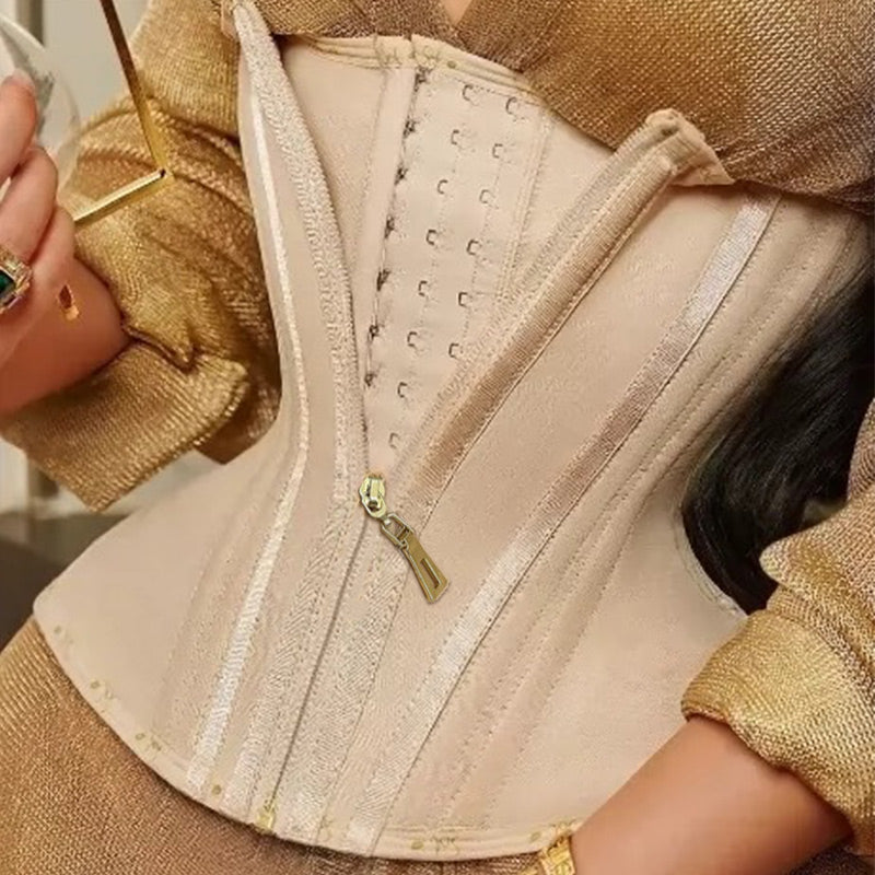 ADJUSTABLE FIT Β¨C Hidden hook-and-eye fastenings under the zip allow you to customise the fit and offer adjustable compression for a slimmer figure and maximum waist reduction.